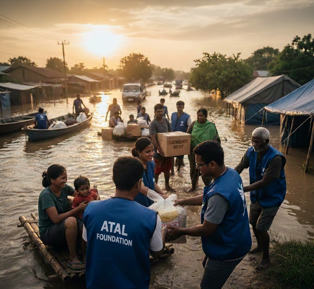 Atal Foundation Support for Flood Victims initiative is a humanitarian effort to stand with families affected by devastating floods. Through relief materials, essential supplies, and on-ground assistance, the foundation aims to restore hope, dignity, and strength to those rebuilding their lives.